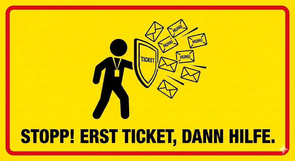 Es gibt in jedem Unternehmen diese eine Infrastruktur-Regel, die klarer ist als Quellwasser: Probleme gehören ins Ticket-System. Es ist ein einfacher, logischer Prozess. Doch für viele Mitarbeiter scheint das Ticket-System ein dunkler Abgrund zu sein, in dem ihre Anliegen spurlos verschwinden – während das persönliche Postfach des Admins als kuschelige VIP-Lounge der Problemlösung wahrgenommen wird.
